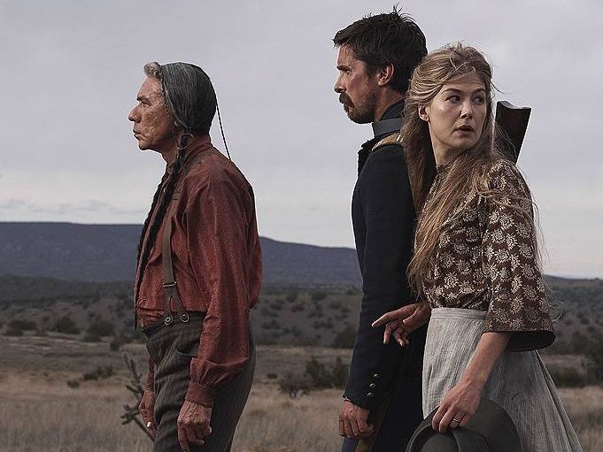 Эта эмоциональная метаморфоза, конечно, готовится со всей драматургической неизбежностью. Индейцы успевают показать, что они тоже люди, а в арсенале режиссера и автора сценария Скотта Купера есть эпизодические и второстепенные персонажи, которые рассуждают о природе насилия и порой свидетельствуют о том, что произошедшее с индейцами в Америке — результат по меньшей мере дикой несправедливости. Довольно прогрессивные речи для 1892-го. Параллельно развивается история духовного перерождения героини Розамунд Пайк. Окровавленная Розали встречает индейцев капитана Блокера с гримасой ужаса на лице, но возвращается в большой мир рука об руку с усыновленным внуком погибшего вождя — Маленьким Медведем.